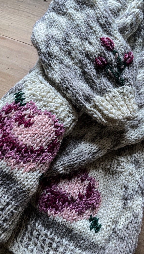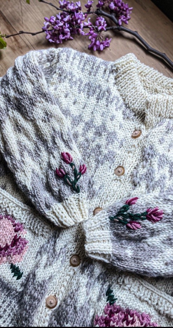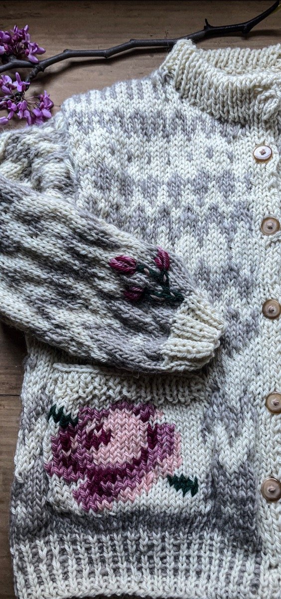 Saquito tejido y bordado a mano con lana de oveja . Una pieza única !!!!